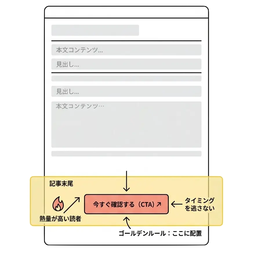 この4箇所にCTAを配置することで、読者がどのタイミングで「次に進みたい」と思っても、迷わず行動できるようになります。